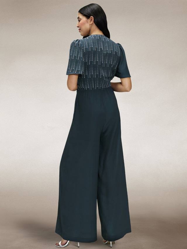 Этот комбинезон с завязками на талии от HotSquash из мягкого шифона с приталенным вырезом и короткими рукавами создает эффектный образ. Это цельнокроеное платье широкого силуэта - блестящая альтернатива платьям для особого случая.