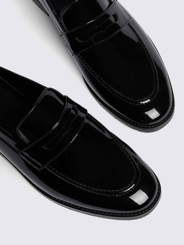 Классические для обуви мокасины Moss с элегантной лакированной отделкой, на низком каблуке и в традиционном стиле пенни-лоферов.