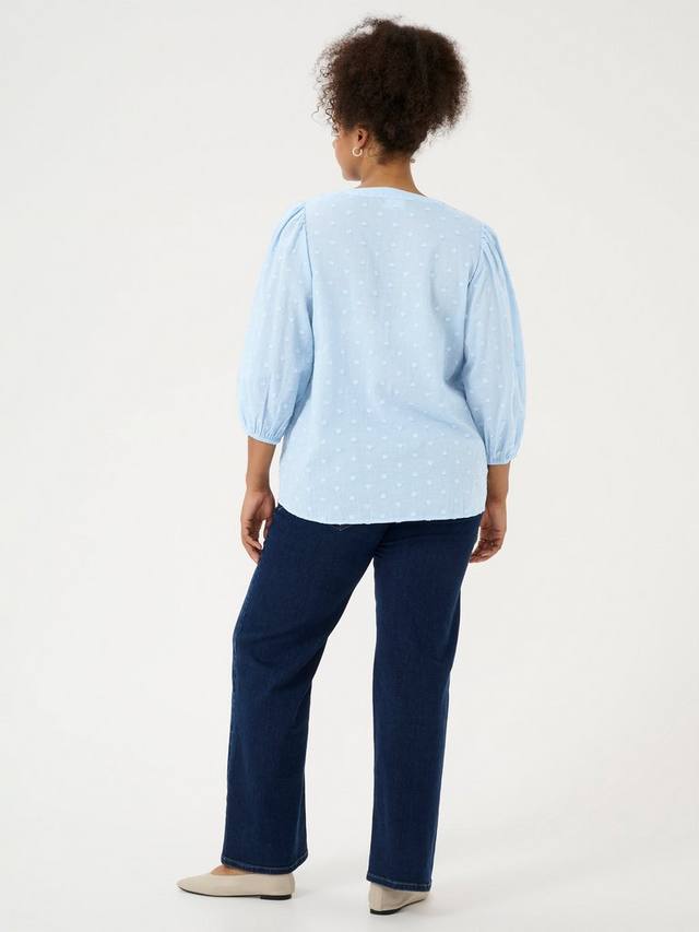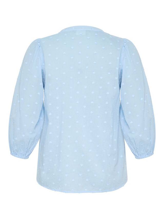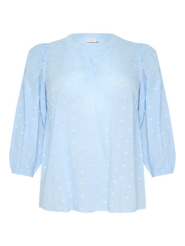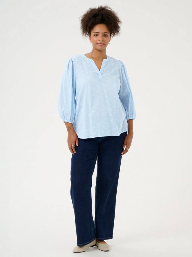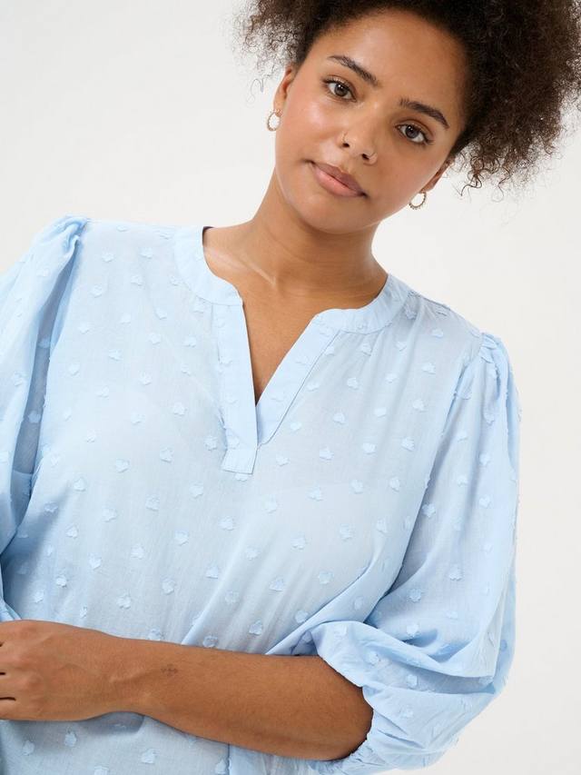 Блузка от KAFFE Curve из чистого хлопка с фактурным принтом, вышитым добби, с v-образным вырезом и рукавами длиной три четверти.