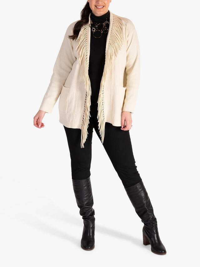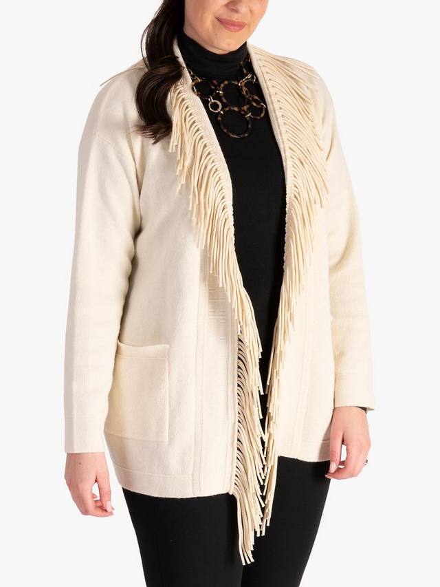 Кардиган с бахромой из смесовой шерсти chesca, кремовый