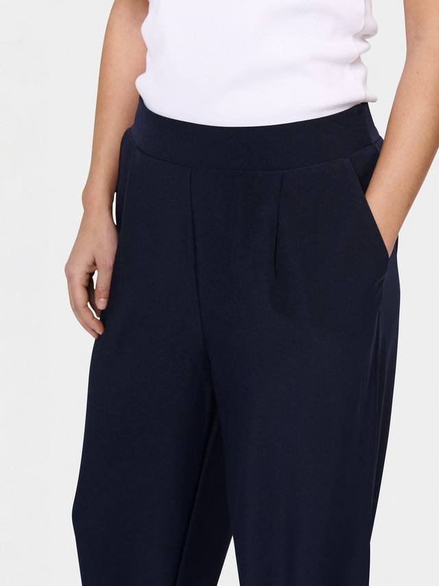 Брюки Celest - это простые и неподвластные времени брюки, которые будут отлично смотреться с любым верхом. У них высокая талия, эластичный пояс и боковые карманы в швах. Штанины широкие и во всю длину, а брюки свободного покроя.