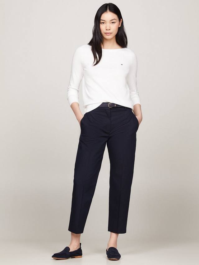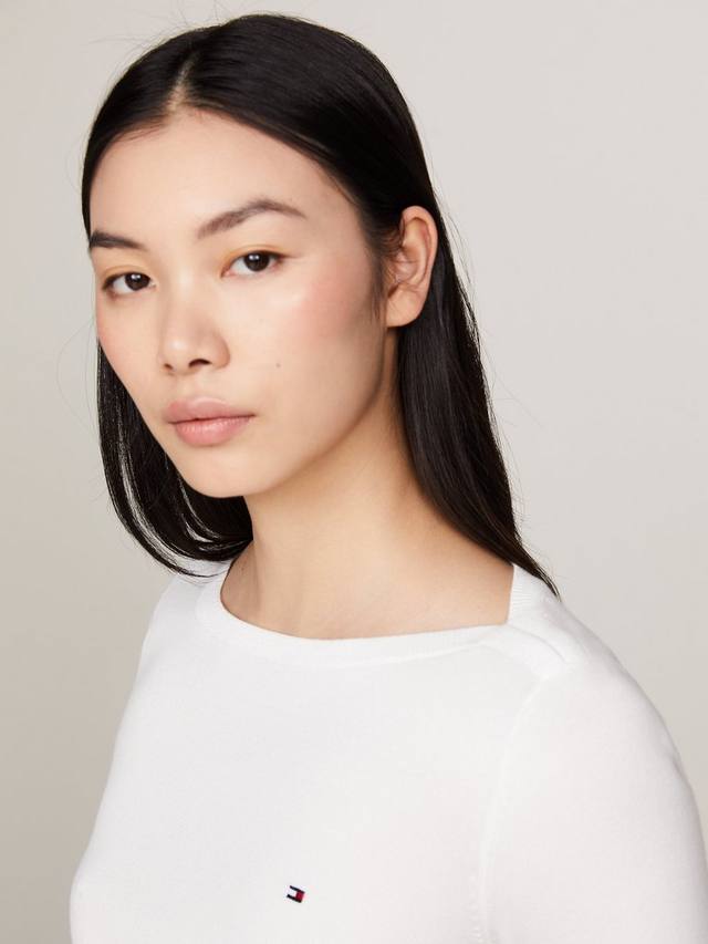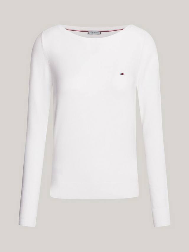 Простой и стильный легкий джемпер Tommy Hilfiger с вырезом лодочкой, выполненный из хлопка для улучшения воздухопроницаемости.