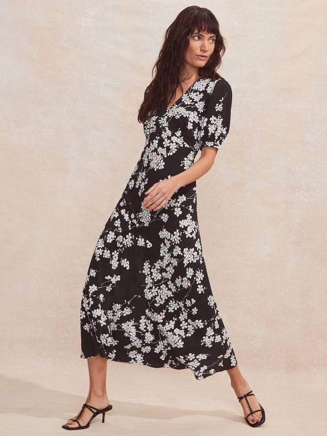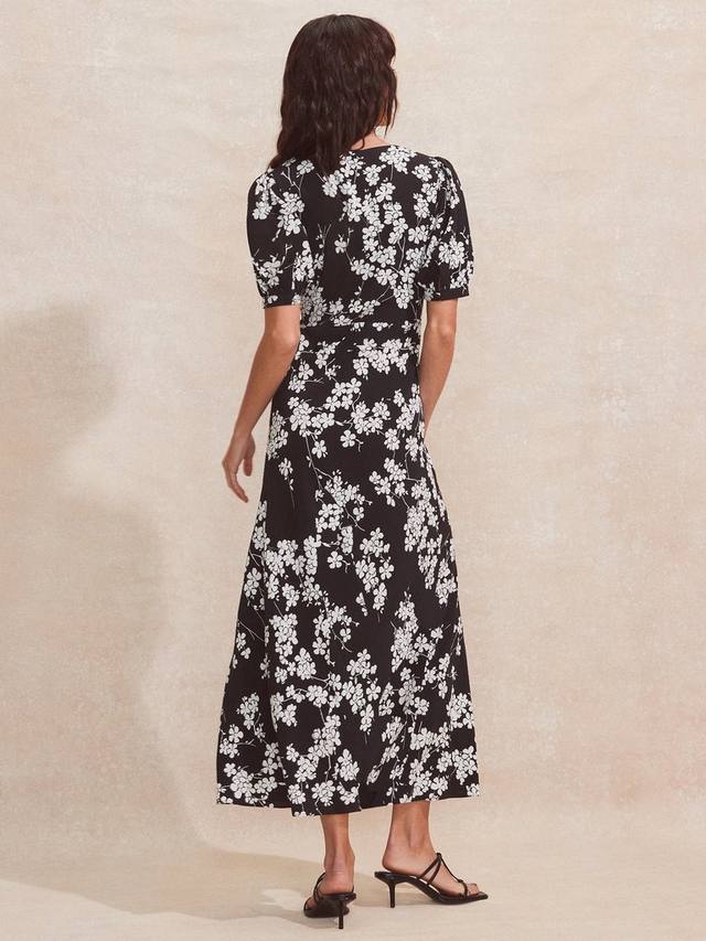 Это миди-платье с запахом сзади простой А-силуэтной формы от Ro & Zo выполнено из вискозы, которую любят за ее невесомость. Этот фасон с универсальным v-образным вырезом и короткими рукавами дополнен монохромными цветами ditsy.