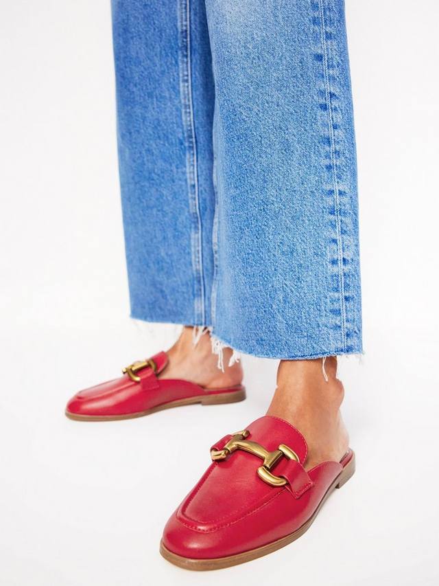 Туфли на плоской подошве с изогнутым квадратным носком придают им современный вид.