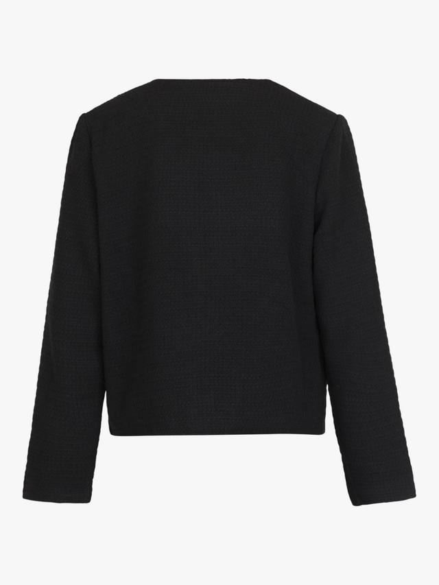 Vesan - короткий, изысканный блейзер без воротника. Блейзер обычного покроя, с карманами на груди и застежкой на пуговицы.