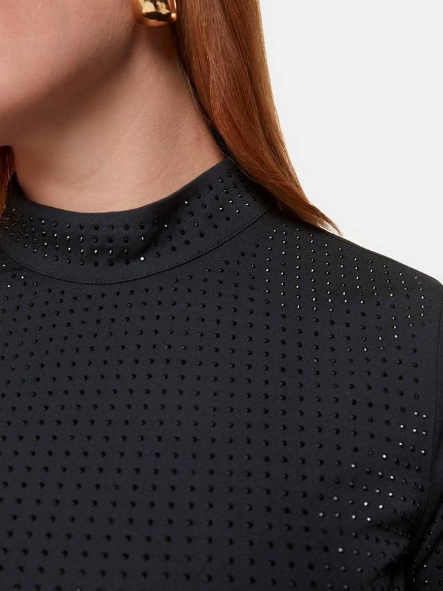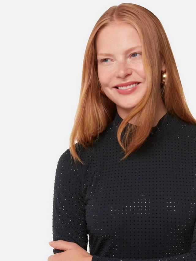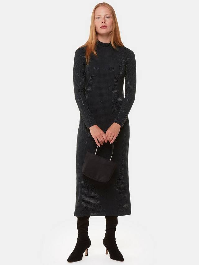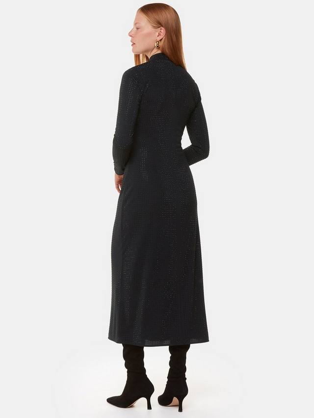 Приталенное платье миди от Whistlesis, украшенное со всех сторон, из мягкого джерси с высоким вырезом и длинными рукавами.