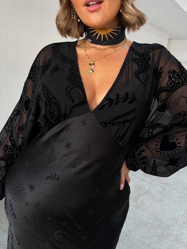 Атласное платье с прозрачным рукавом Never Fully Dressed, черный