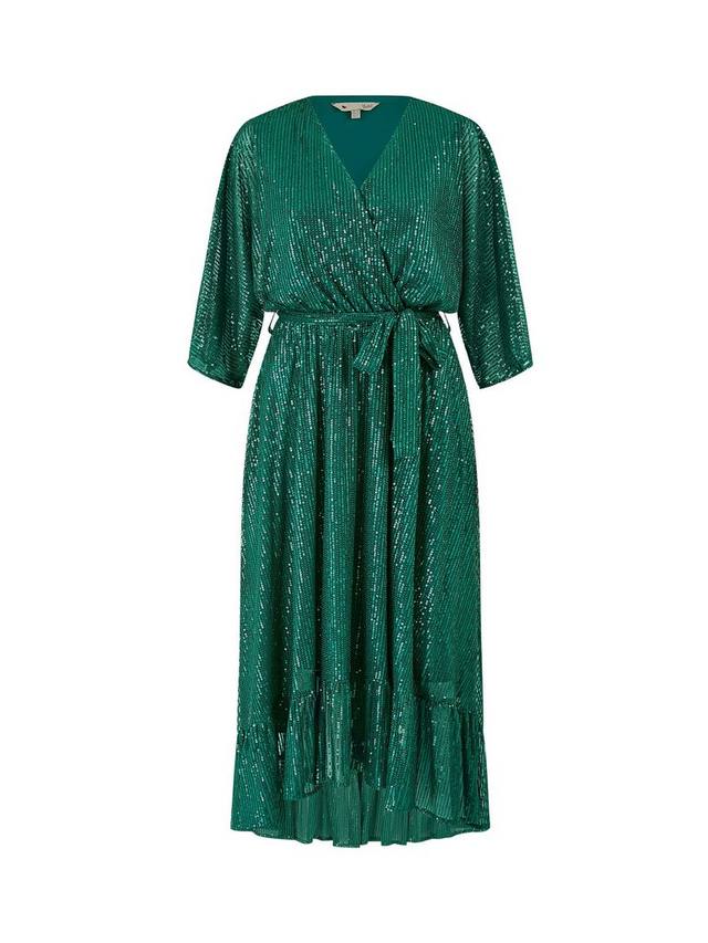 Это платье в форме кимоно - идеальный наряд для вечеринки! С струящимся глубоким подолом, сплошь усыпанным мерцающими блестками, которые красиво переливаются на свету. Завязки на талии и V-образный вырез невероятно элегантны и будут потрясающе смотреться на любом мероприятии или приглашении в этот праздничный сезон.