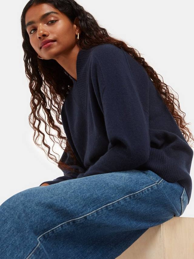 Кашемировый джемпер с v-образным вырезом Whistles, темно-синий