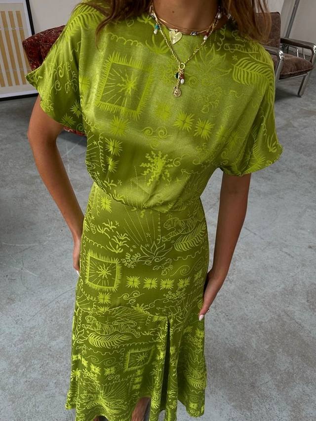 Жаккардовое платье с принтом erin Never Fully Dressed, цвет Lime