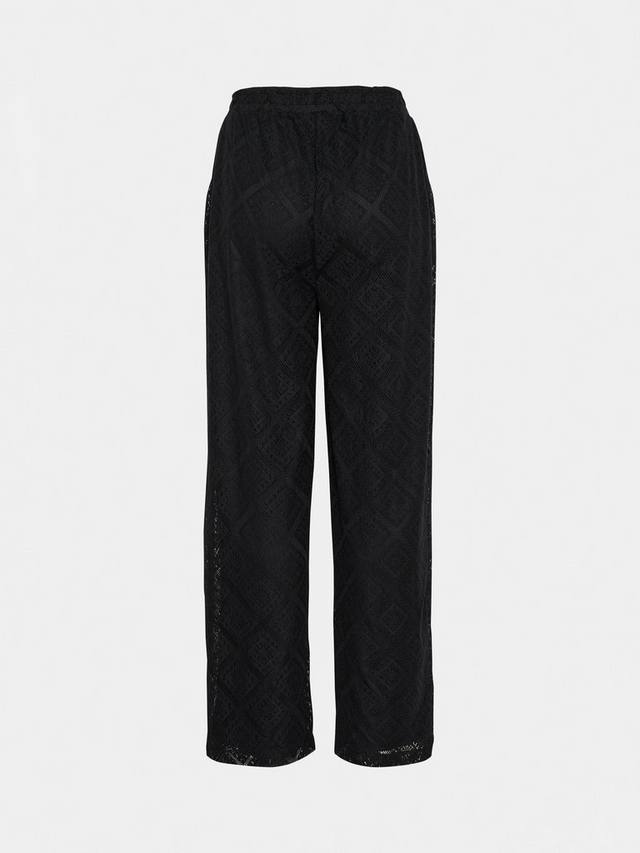 Брюки Jacobina - это женственные брюки из красивой кружевной ткани. У них высокая талия, эластичный пояс и боковые карманы в швах. Брюки имеют правильную посадку с широкими штанинами и сшиты на подкладке в тон по всей длине.