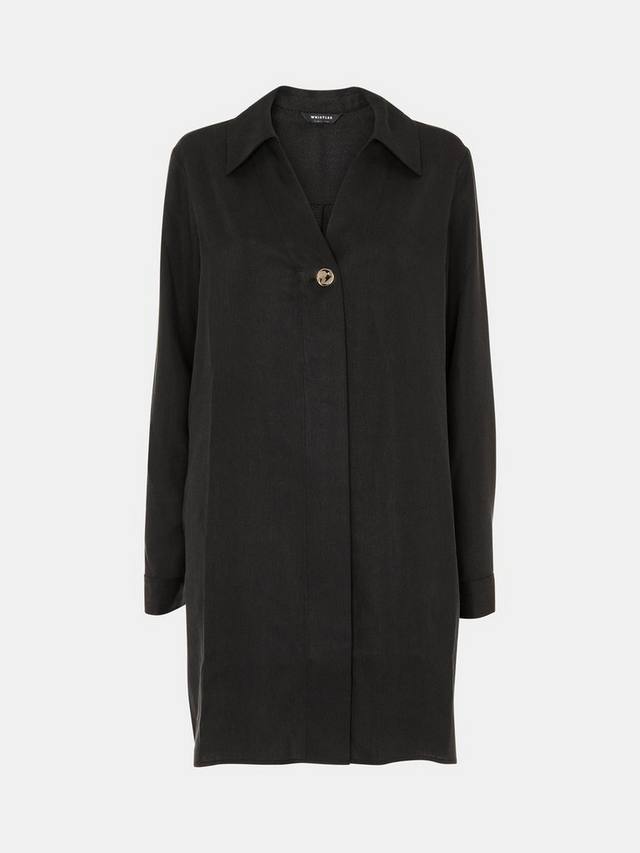 Мини-платье-рубашка от Whistles с воротником-стойкой и длинными рукавами выполнено из мягкого лиоцелла с пуговицами.