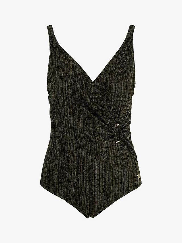 Купальник Athena от Seaspray украшен современной золотой отделкой и легкой рябью спереди. Эта специально подобранная ткань обеспечивает роскошное мерцание, обещая быть не менее гламурной, чем в вашем следующем месте отдыха.