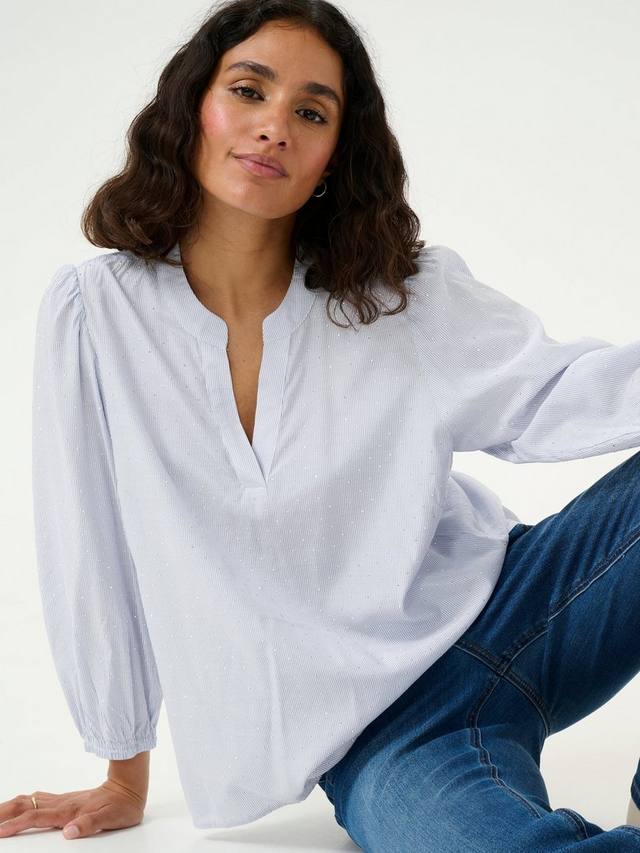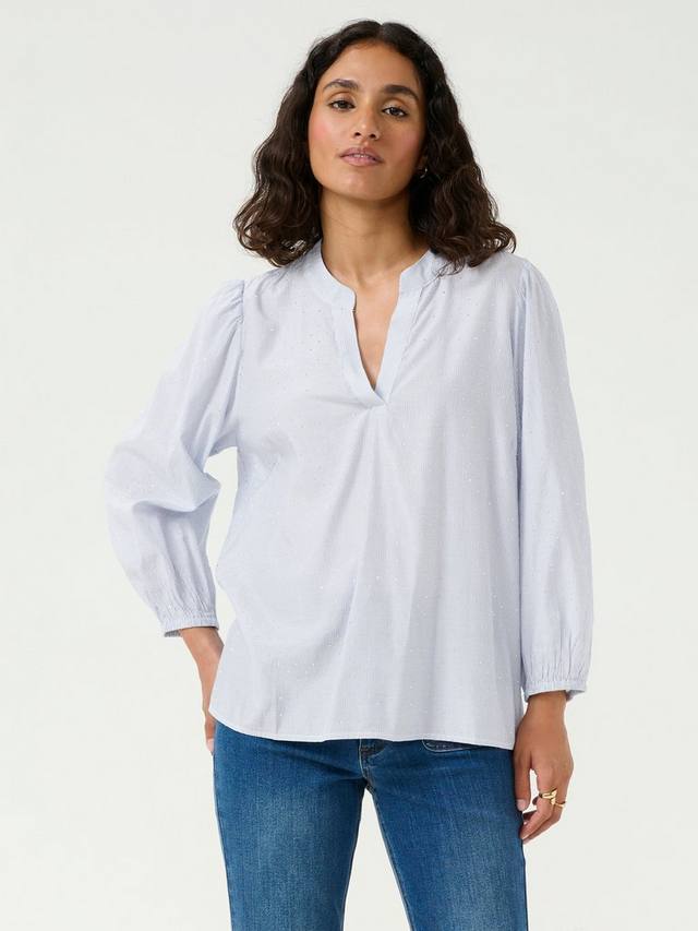 Эта блузка от KAFFE в аккуратную полоску станет незаменимым дополнением к вашему гардеробу. Модель с v-образным вырезом и рукавами длиной три четверти выполнена из мягкой смеси вискозы и незаменима в повседневном гардеробе.