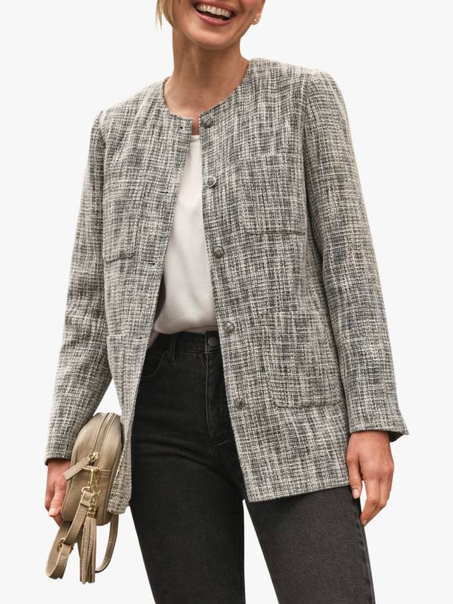 Этот блейзер из коллекции Pure, аккуратно скроенный для эффектной отделки, имеет обычную длину.