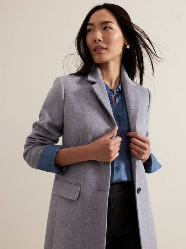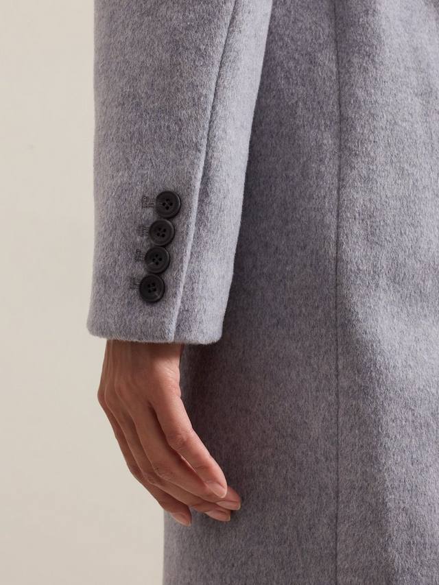 Фирменное пальто Lydia великолепного оттенка из теплой мягкой смеси переработанной шерсти с передними карманами с клапанами, деталями на пуговицах и вентиляционным отверстием сзади. Благодаря обтекаемому приталенному крою пальто идеально дополнит вашу коллекцию верхней одежды неподвластного времени силуэта.