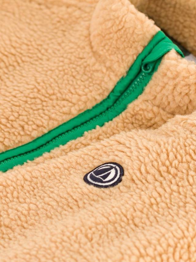 Теплая и мягкая куртка унисекс из шерпы с практичными деталями, такими как высокий вырез и молния контрастного цвета. Застежка на молнию сзади придает дополнительную практичность. Значок Petit Bateau украшает левое плечо.
