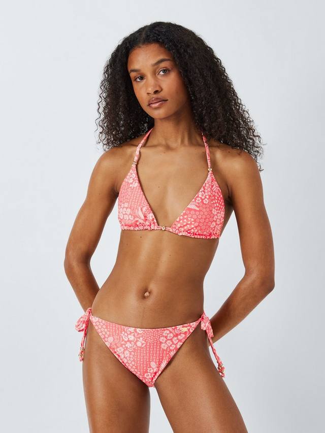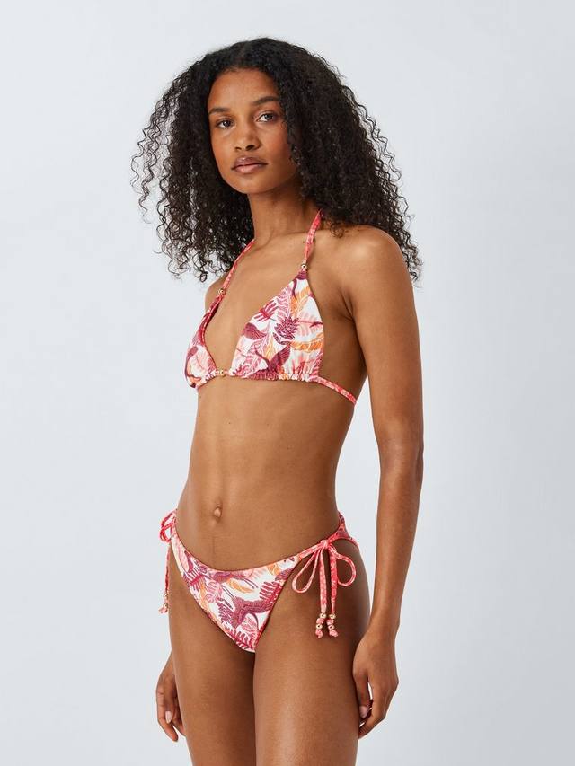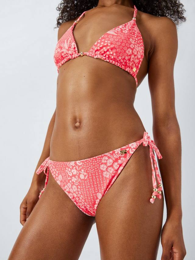 Универсальная пара плавок-бикини, завязывающихся самостоятельно, с красивым тропическим лоскутным рисунком.
