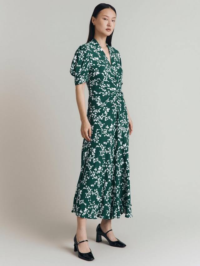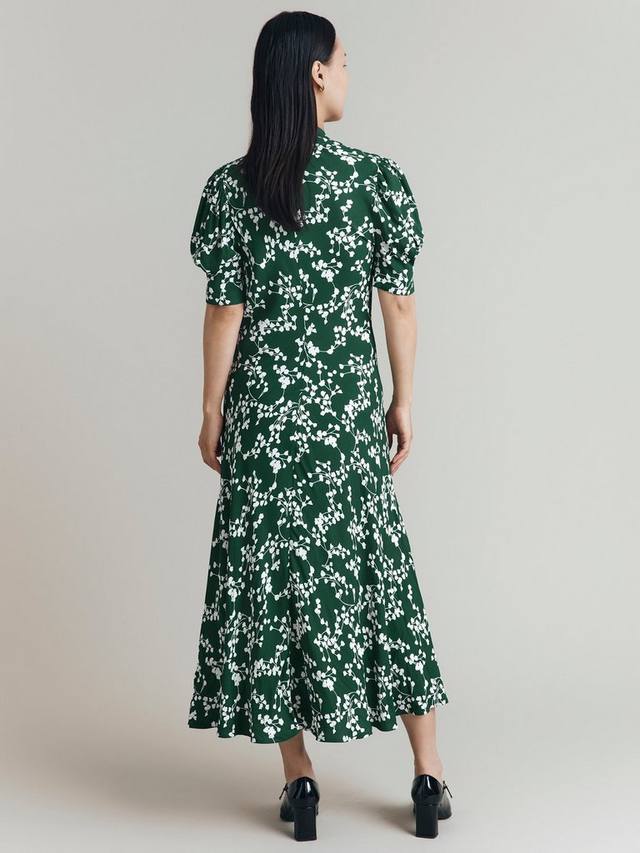 Платье с пышными рукавами в цветочек капри Ghost, зеленый