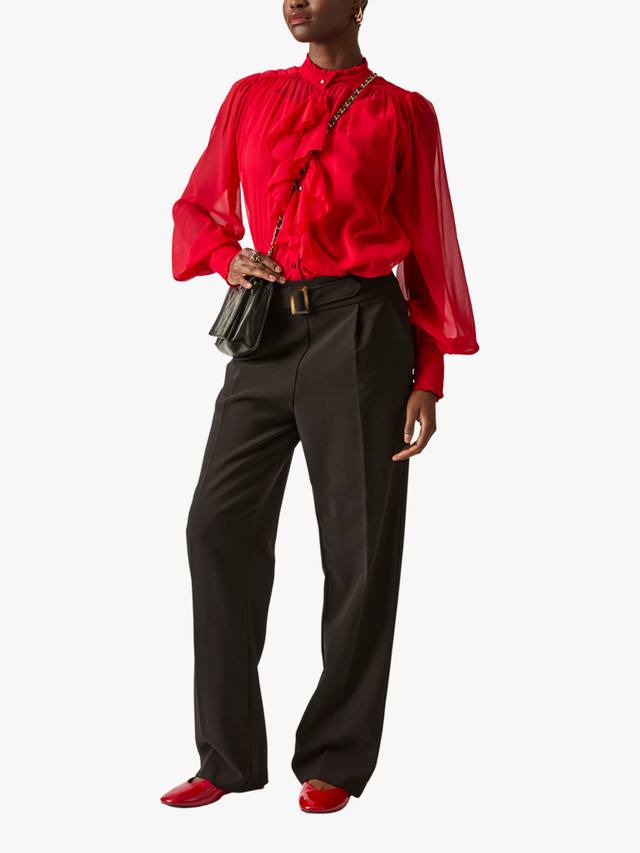 Брюки с высокой талией от Джеймса Лейкленда отличаются стильной застежкой, плиссированной передней частью, эластичной спинкой, застежкой на молнию и неподвластным времени прямым кроем. Благодаря дополнительным практичным боковым карманам они плавно переходят из профессионального стиля в повседневный.