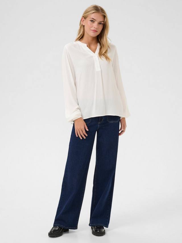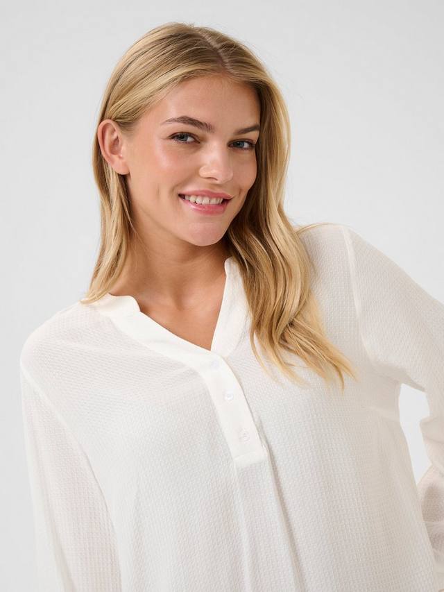 Блузка mathilde - это простой топ, который идеально впишется в любой гардероб. У него V-образный вырез горловины Хенли с пуговицами и воротником-лентой, а также обычная посадка. Рукава представляют собой длинные рукава-слонки с эластичным краем и едва заметным объемом, а блузка имеет вырез на бедрах.