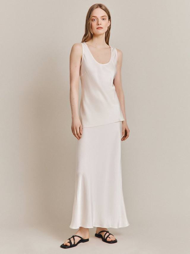 Кому не нужен универсальный топ в гардеробе? Атласный мягкий топ Margot с округлым вырезом и косым кроем. Не только это, но и этот топ в стиле жилета также украшен вырезами на груди, что способствует приятной посадке.