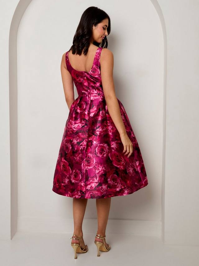 Красиво структурированное платье в цветочек А-силуэта с расклешенной юбкой для придания объема.