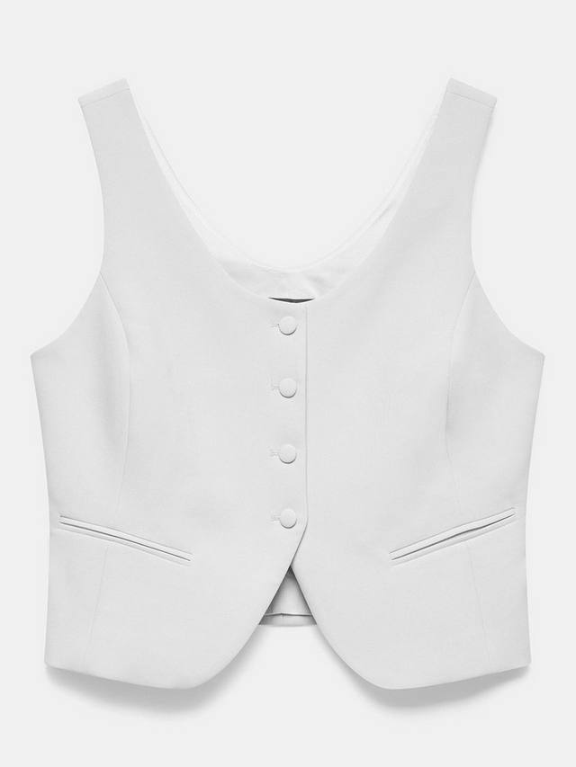 Жилет с круглым вырезом, прорезными карманами и застежкой на пуговицы спереди.