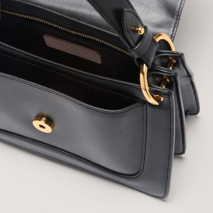 Бренд пополнился новой подписью: Coccinelle C-Me. Логотип переосмыслен с помощью буквы C от Coccinelle, которая обвивается вокруг и охватывает плектр — знаковый элемент бренда — символизируя переплетение прошлого и настоящего в жизни женщины. Геометрические линии и элегантные изгибы возвышают дизайн, а конструкция с клиньями придает этой сумке сочетание функциональности и сдержанной элегантности, призванной стать незаменимым спутником женщины Coccinelle в течение всего дня. Эта модель изготовлена из гладкой кожи, выдубленной специальными маслами, что придает ей прочный и изысканный вид.