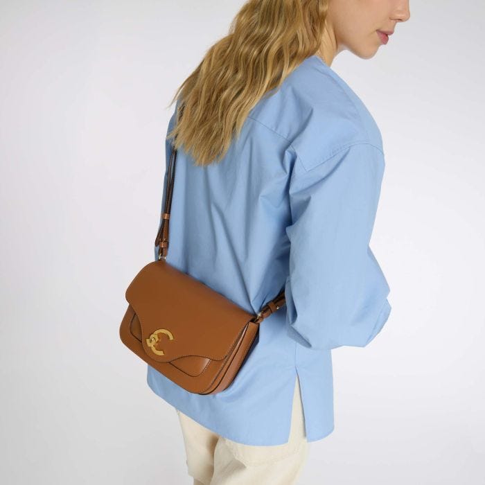 Бренд пополнился новой подписью: Coccinelle C-Me. Логотип переосмыслен с помощью буквы C от Coccinelle, которая обвивается вокруг и охватывает плектр — знаковый элемент бренда — символизируя переплетение прошлого и настоящего в жизни женщины. Геометрические линии и элегантные изгибы возвышают дизайн, а конструкция с клиньями придает этой сумке сочетание функциональности и сдержанной элегантности, призванной стать незаменимым спутником женщины Coccinelle в течение всего дня. Эта модель изготовлена из гладкой кожи, выдубленной специальными маслами, что придает ей прочный и изысканный вид.