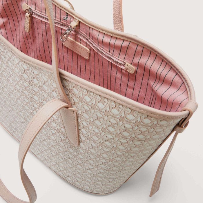 Сумка-тоут Coccinelle New Never Without bag coated monogram medium, цвет Multi Blanco/Rosette