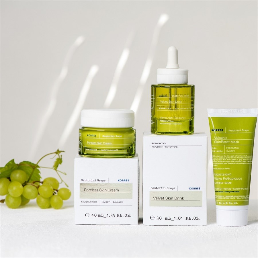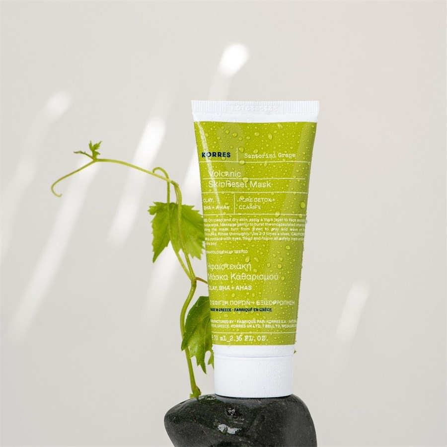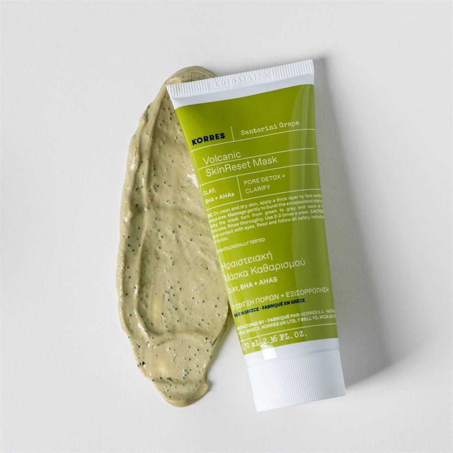 Маска для очищения кожи с вулканическим песком Santorini Grape от KORRES привнесет в ваш дом ритуал ухода за кожей в греческом стиле. Маска специально разработана для ухода за жирной кожей, комбинированной кожей и кожей с расширенными порами. Обогащенная капсулами активированного угля маска для кожи Santorini Grape Skin Refining Mask с вулканическим песком от KORRES быстро удаляет излишки жидкости и затвердевший кожный жир из пор, в результате чего они становятся меньше и менее заметными. Маска для ухода за кожей на 100% веганская и поставляется в перерабатываемой упаковке. Содержит 86% натуральных ингредиентов. Маска для очищения кожи с вулканическим песком от KORRES привлекательна еще и по другой причине: одноименный виноград сорта Санторини растет на вулканическом пепле, что затрудняет его добычу, но он очень богат антиоксидантами и танинами. Маска для ухода за кожей особенно бережно удаляет излишки кожного сала, а содержащаяся в ней салициловая кислота BHA оказывает легкое отшелушивающее и осветляющее действие. Третьим активным ингредиентом является белая и зеленая глина, которая, помимо прочего, поглощает раздражители и грязь. Маску всегда следует использовать в качестве первого шага ухода после очищения. Вначале используйте его примерно раз в неделю, позже его можно использовать каждые три дня, чтобы надежно очистить поры от кожного сала.