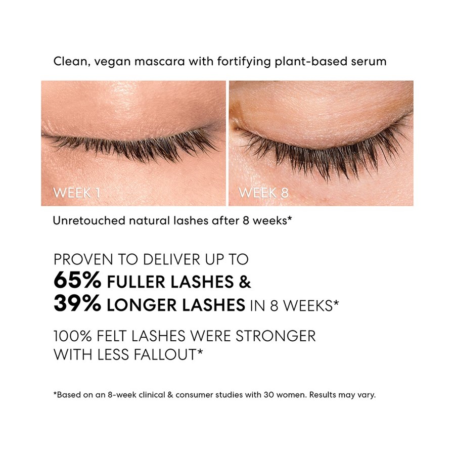 The bareMinerals Strength & Тушь для ресниц Length Serum-Infused Mascara — это больше, чем просто тушь, благодаря укрепляющей растительной формуле. Благодаря своей глубокой черной формуле тушь визуально делает ресницы длиннее и гуще, тем самым дополняя макияж глаз. В то же время он поддерживает естественную густоту и длину ресниц, позволяя им раскрыть всю свою красоту даже без дополнительного макияжа. Обогащенные укрепляющим комплексом из богатого аминокислотами пептида и цветков красного клевера, ресницы укрепляются от корней и могут еще лучше выдерживать ежедневные нагрузки — от трения глаз до снятия макияжа. В то же время рецепт обеспечивает оптимальные условия роста. Тушь также выигрывает благодаря специальной щеточке-лопатке с эффектом 3 в 1. Это мгновенно придает ресницам идеальный изгиб, длину и разделение, а также оптимально покрывает их глубокой черной текстурой.