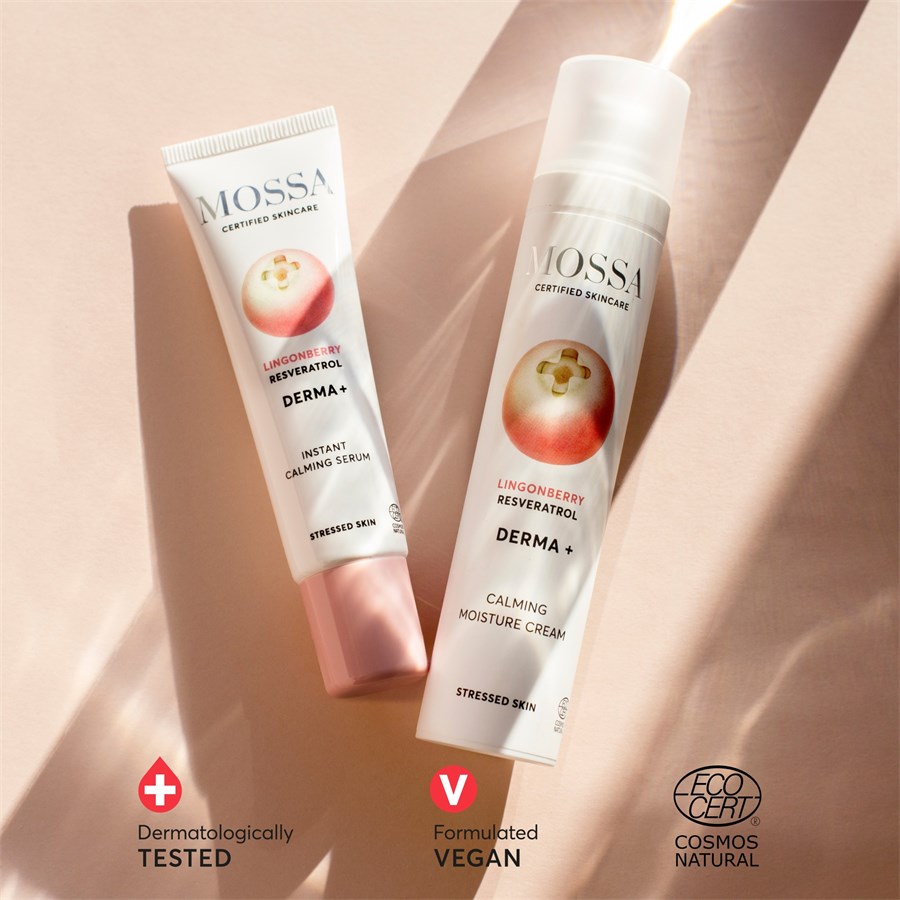 Успокаивающий увлажняющий крем Derma+ из категории кремов Mossa помогает успокоить и оживить уставшую и напряженную кожу. В состав комплекса активных ингредиентов входит молекула ресвератрола, которая извлекается из клюквы, гиалуроновая кислота и витамины С и Е. Гиалуроновая кислота глубоко увлажняет кожу, делая ее шелковистой и мягкой, а также снимает чувство стянутости. Ресвератрол предотвращает появление признаков старения кожи, а витамины С и Е усиливают сияние кожи. Уход за кожей защищает от вредного воздействия окружающей среды, укрепляя кожный барьер. Мягко успокаивает кожу и снабжает ее важными питательными веществами.
