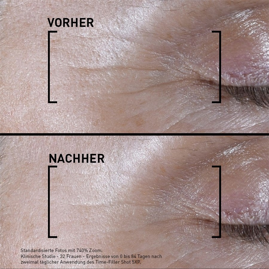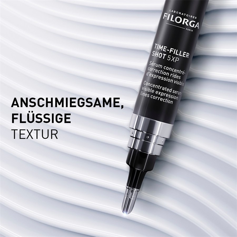 С сывороткой Filorga Time-Filler Shot 5XP вы получите интенсивный уход за кожей лица против морщин и мимических морщин прямо у себя в ванной комнате. Уход за кожей обязан своим мощным эффектом нейропептидам. Они оказывают расслабляющее действие на кожу и уменьшают видимость пяти различных типов морщин: морщин на лбу, вызванных повторяющимися движениями лицевых мышц, морщин смеха, морщин беспокойства, морщин в уголках рта и морщин над верхней губой. Всего через 7 дней использования черты вашего лица станут более расслабленными. Нейропептидный комплекс для ухода за лицом создан по образцу инъекций ботокса и сочетает в себе гексапептид и октапептид. Вместе они оказывают расслабляющее действие и придают коже более гладкий вид. Кроме того, формула обогащена экстрактом морских дрожжей, который также оказывает положительное влияние на упругость кожи. Средство по уходу за кожей оснащено охлаждающим металлическим аппликатором для точного нанесения.