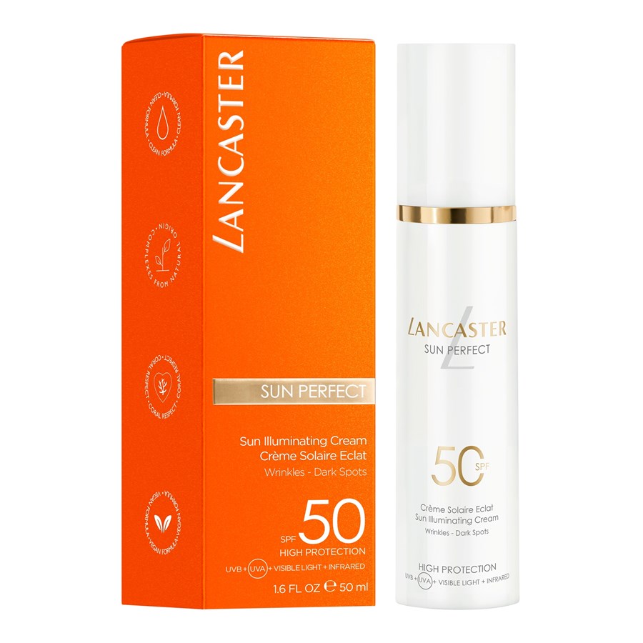 Увлажняющий солнцезащитный крем Lancaster из линейки Sun Perfect упакован в эксклюзивный дозатор и легко дозируется. Благодаря улучшенной формуле крем имеет легкую текстуру, не липкий и не жирный. Солнцезащитное средство наносится на пальцы и втирается в кожу лица. Солнцезащитный крем мгновенно тает на коже и полностью впитывается. Защита от солнца становится невидимой благодаря солнцезащитному крему Sun Illuminating Cream SPF50. Для оптимальной защиты солнцезащитный крем необходимо время от времени обновлять. Солнцезащитные средства из серии Sun Perfect являются веганскими и разработаны с учетом требований по защите океана.