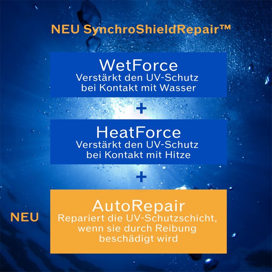Первый солнцезащитный лосьон Shiseido с защитной пленкой, которая укрепляется под воздействием тепла и воды и автоматически восстанавливается в случае ссадин благодаря запатентованной технологии Shiseido SynchroShieldRepair.