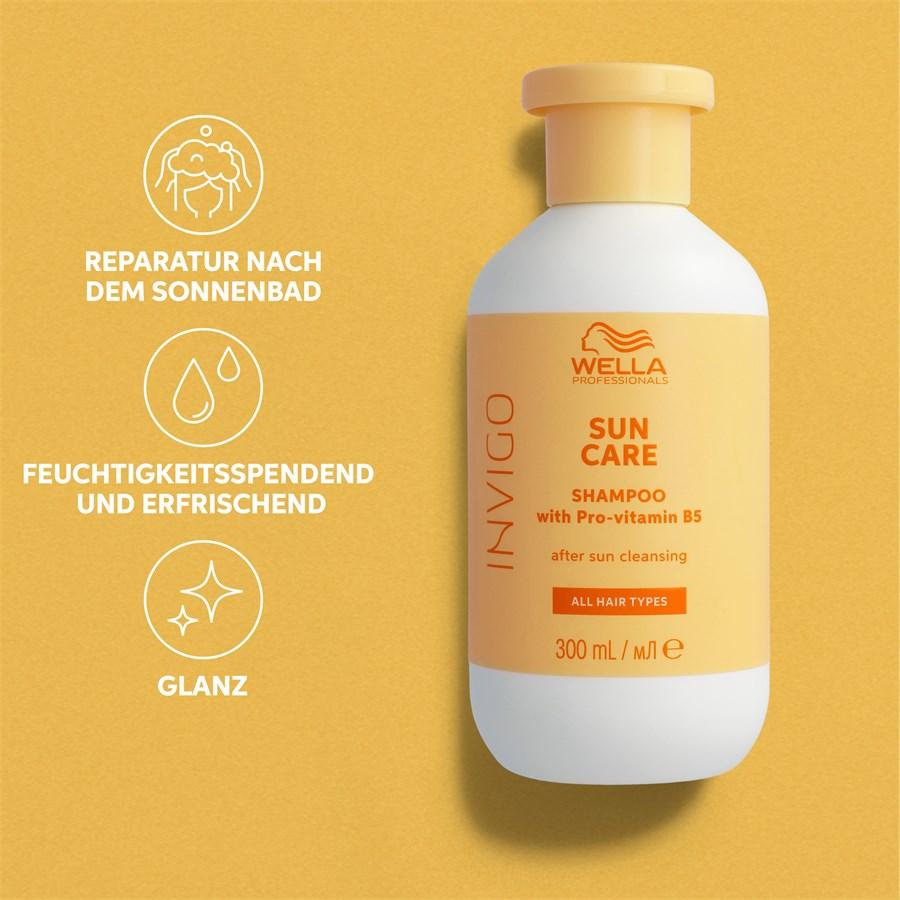 Шампунь Sun Care из линии Sun Care от Wella защищает волосы от повреждения солнечными лучами. Для ухода за волосами шампунь наносят на волосы, предварительно смочив их проточной водой, и массируют, затем средство аккуратно смывают с волос. Под воздействием солнца волосы подвергаются различным воздействиям. Если структура волос подвергается воздействию солнца, они начинают ломаться и выпадать. Особенно