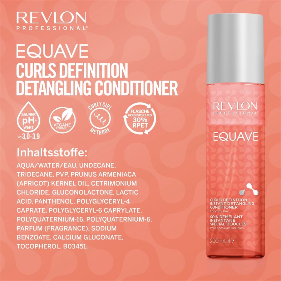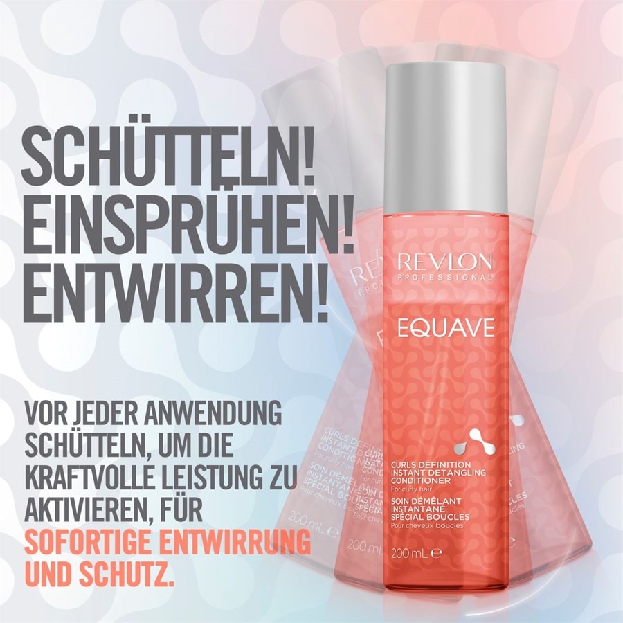 с формулой, которая также содержит абрикосовое масло холодного отжима. При использовании кондиционера для мгновенного распутывания волос Equave Curls Definition от Revlon Professional обязательно тщательно встряхните средство, чтобы смешать две фазы. Средство по уходу за волосами можно распылять на сухие и влажные волосы, делая их мягкими и подчеркивая кудри.