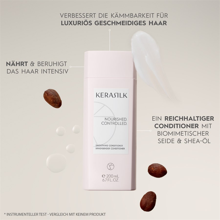 Кондиционер для укрощения волос Essentials от Kerasilk разглаживает непослушные волосы и придает им эластичность. Кондиционер для волос глубоко проникает в структуру волос и успокаивает их. Возвращает вьющиеся, трудноукладываемые волосы под контроль. Его формула обогащена биомиметическим шелком и маслом ши. Он предотвращает пушение и распутывает волосы. От корней до кончиков он снабжает волосы ценными питательными веществами. Улучшает расчесываемость волос и делает их шелковистыми и мягкими.