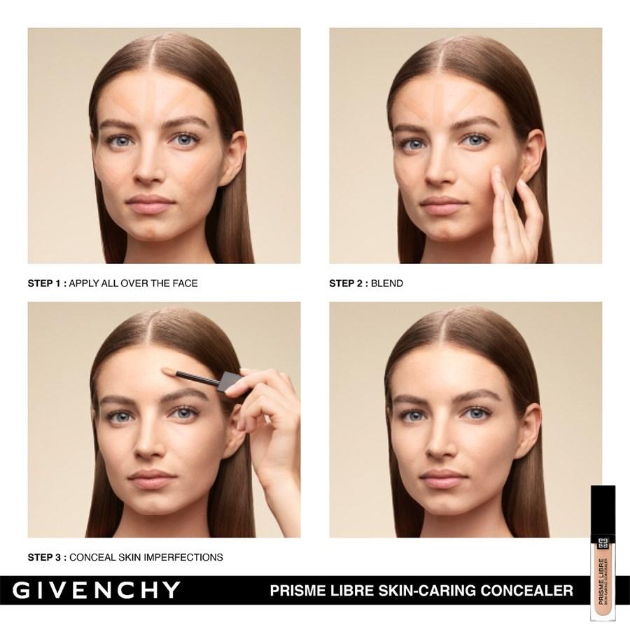 Сверхтонкая гибридная текстура позволяет коже дышать даже после нанесения и оказывает приятное освежающее действие – ваша кожа выглядит гладкой и упругой, а признаки усталости исчезают. При постоянном использовании косметика помогает улучшить внешний вид вашей кожи. Для идеального завершения макияжа для любого тона кожи GIVENCHY предлагает водостойкий консилер Prisme Libre в 24 различных оттенках со средней, наслаиваемой плотностью покрытия.