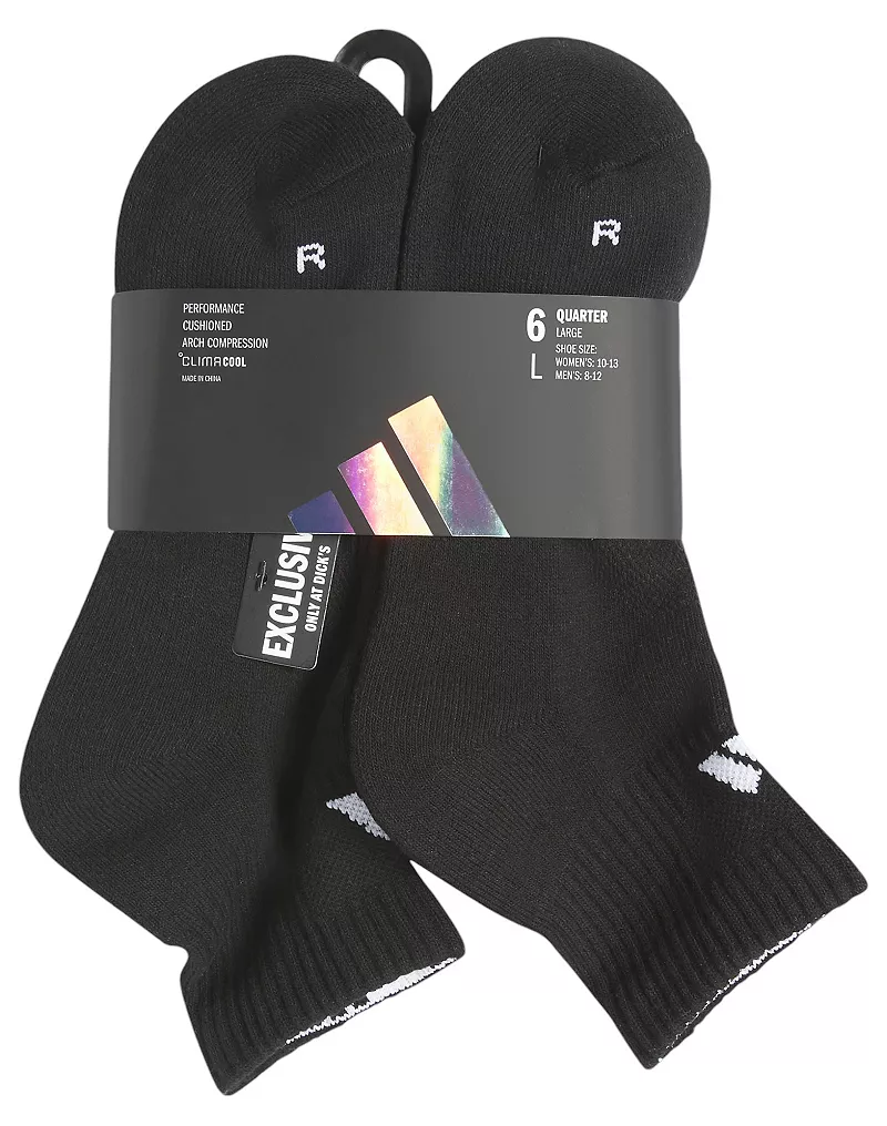 Набор из 6 носков Adidas Unisex Performance четверть длины, черный/белый
