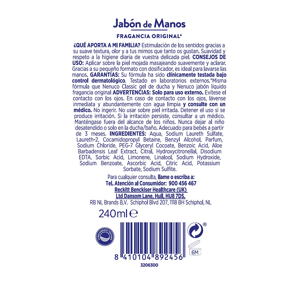 Мыло Classic jabón de manos fragancia original Nenuco, 240 мл. 1 004₽