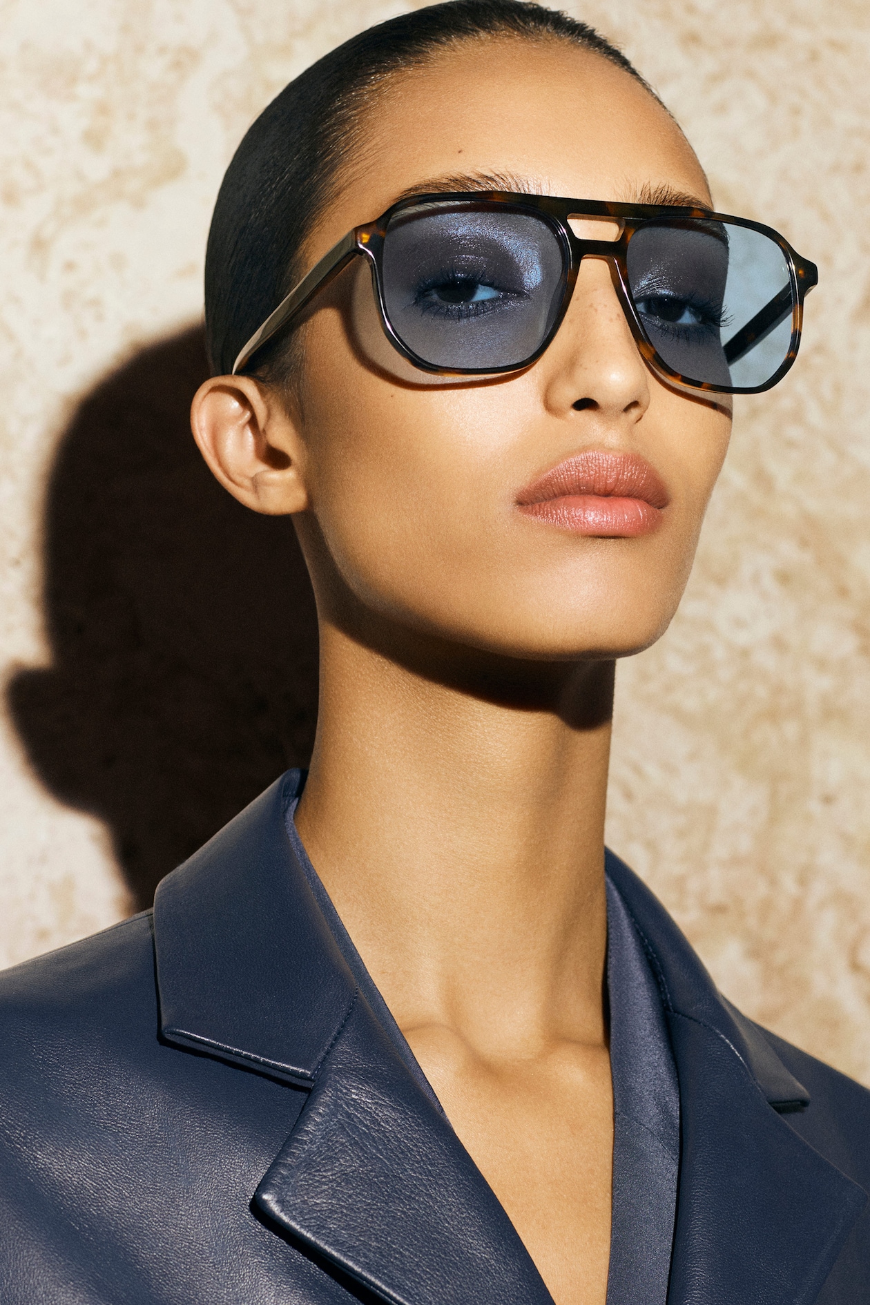 Представляем современную интерпретацию сандалий-авиаторов, дизайн которых отсылает к стилю ретро. Солнцезащитные очки имеют черепаховую оправу и синие линзы. Дополнительным преимуществом модели является декоративная деталь на уровне бровей.