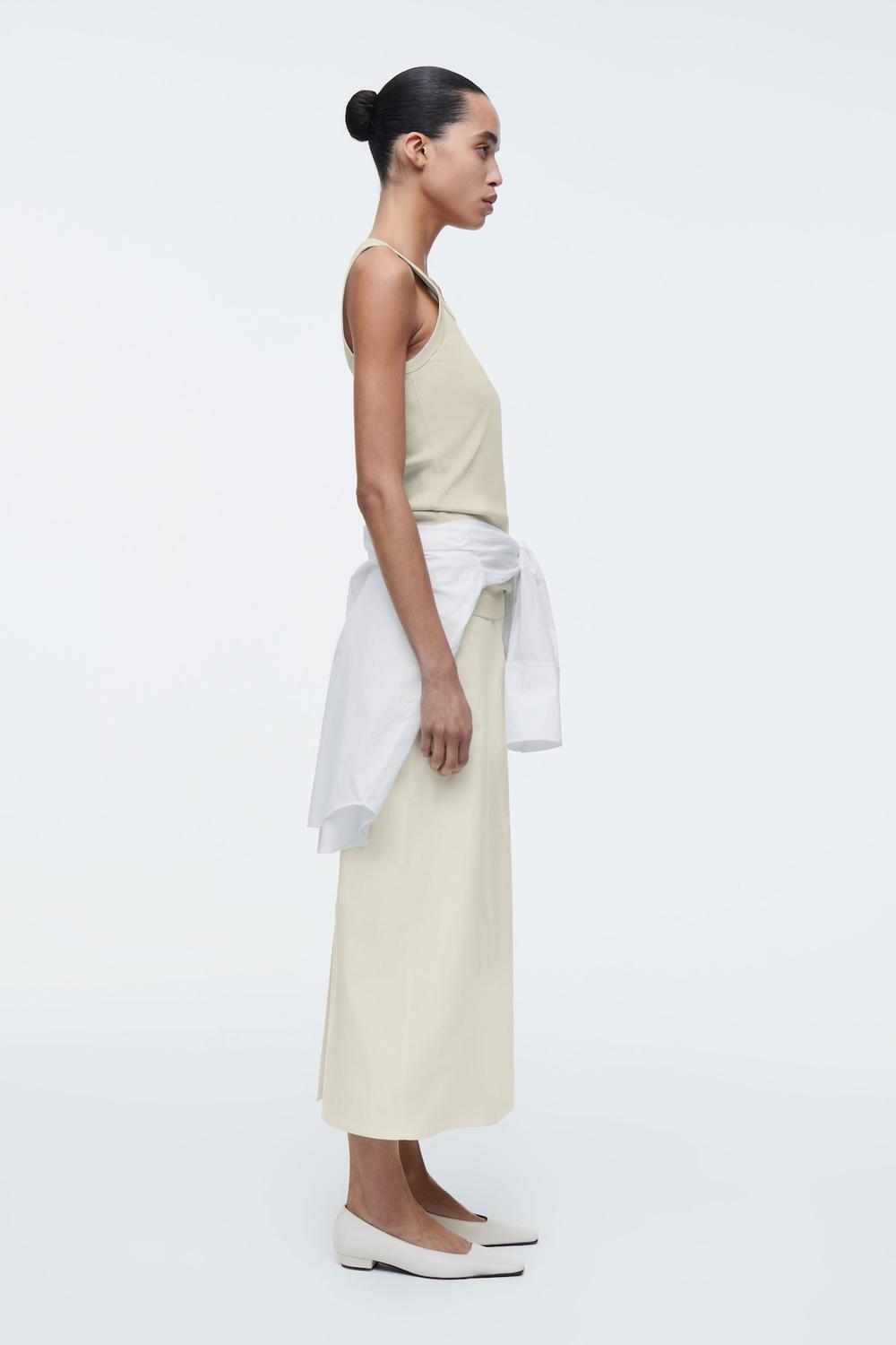 Представляем приталенную футболку без рукавов из трикотажа из органического хлопка, которая станет проверенным решением для жарких дней. Ребристая модель в фисташковом оттенке добавит свежий акцент нейтральным композициям.