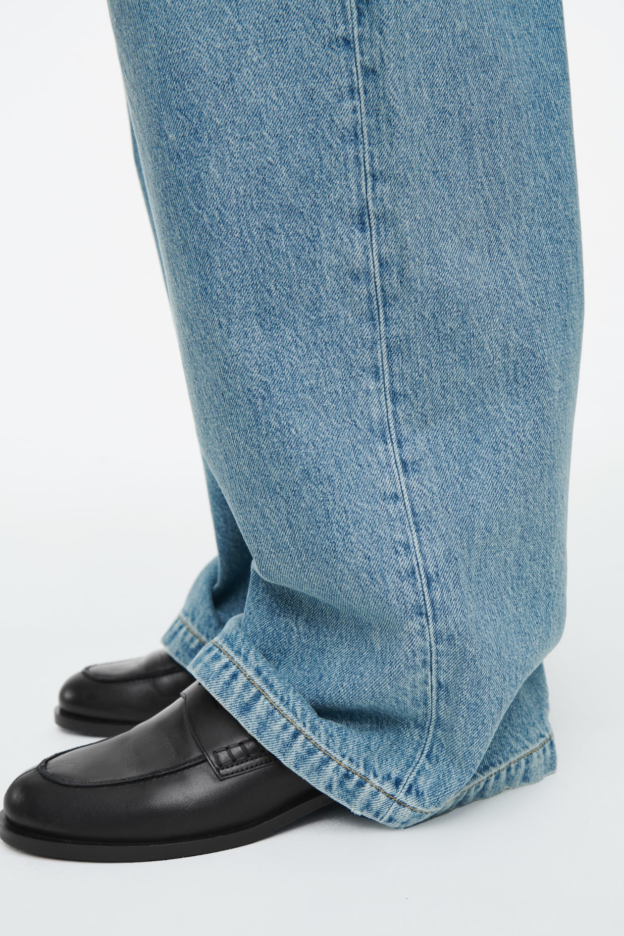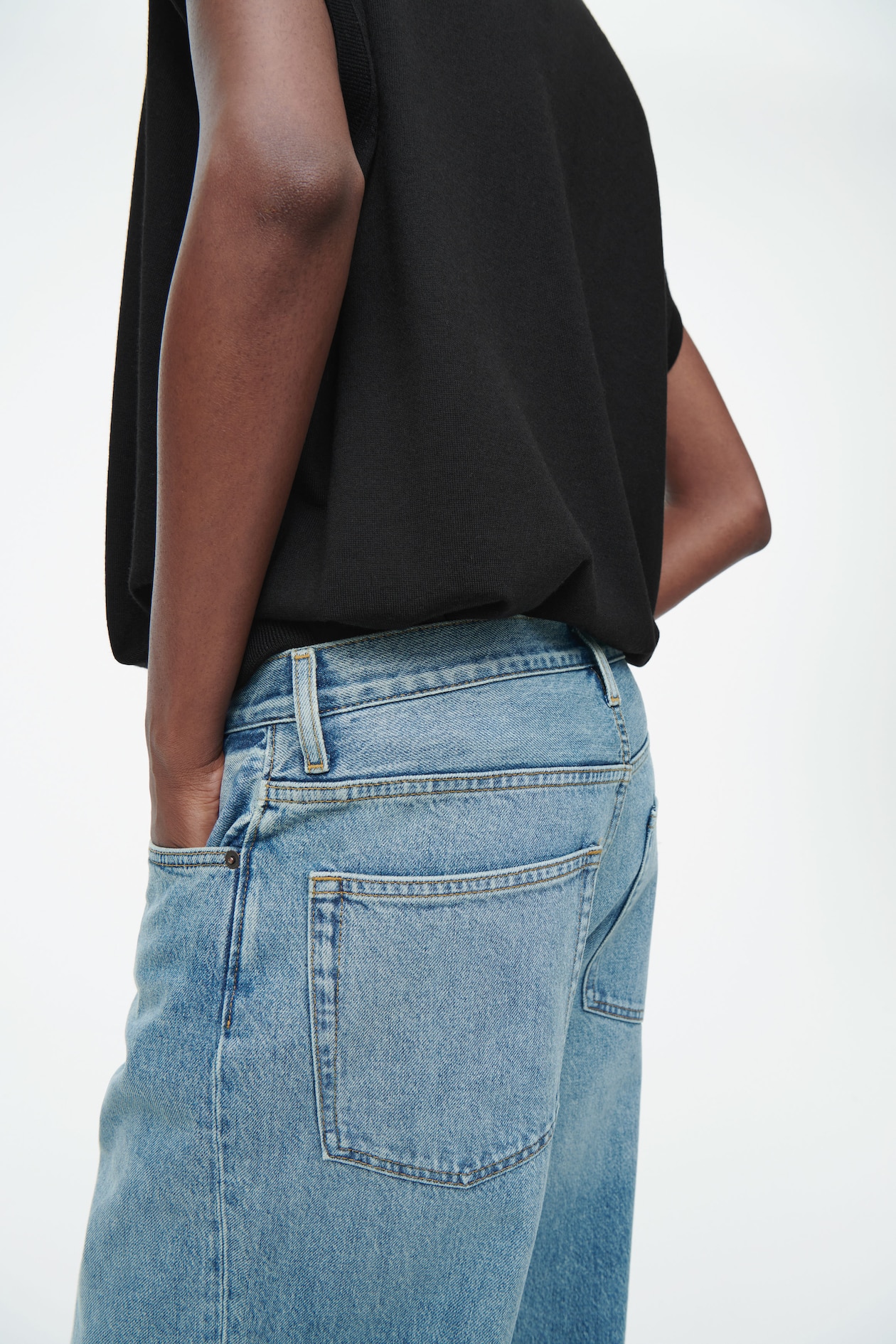 При разработке этих широких джинсов Volume команда дизайнеров женской одежды COS вдохновлялась модой 2000-х годов. Эта модель отличается характерной для того времени заниженной талией, тонкой контрастной строчкой, металлическими заклепками с логотипом и очень широкими штанинами, которые закроют вашу обувь. Джинсы изготовлены из хлопчатобумажной ткани плотностью 280 г (органический хлопок и переработанный хлопок) выцветшего, пыльно-синего цвета.