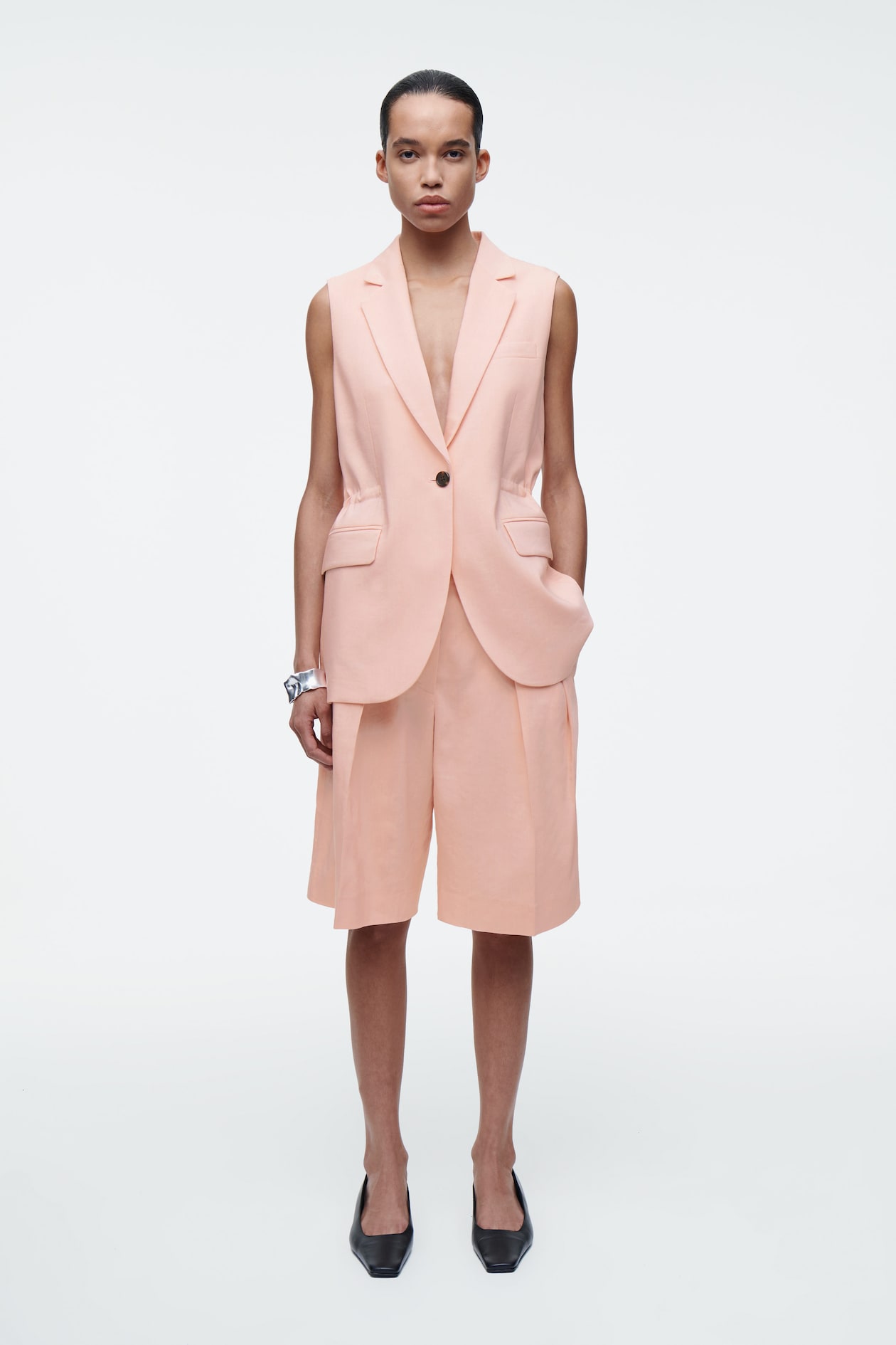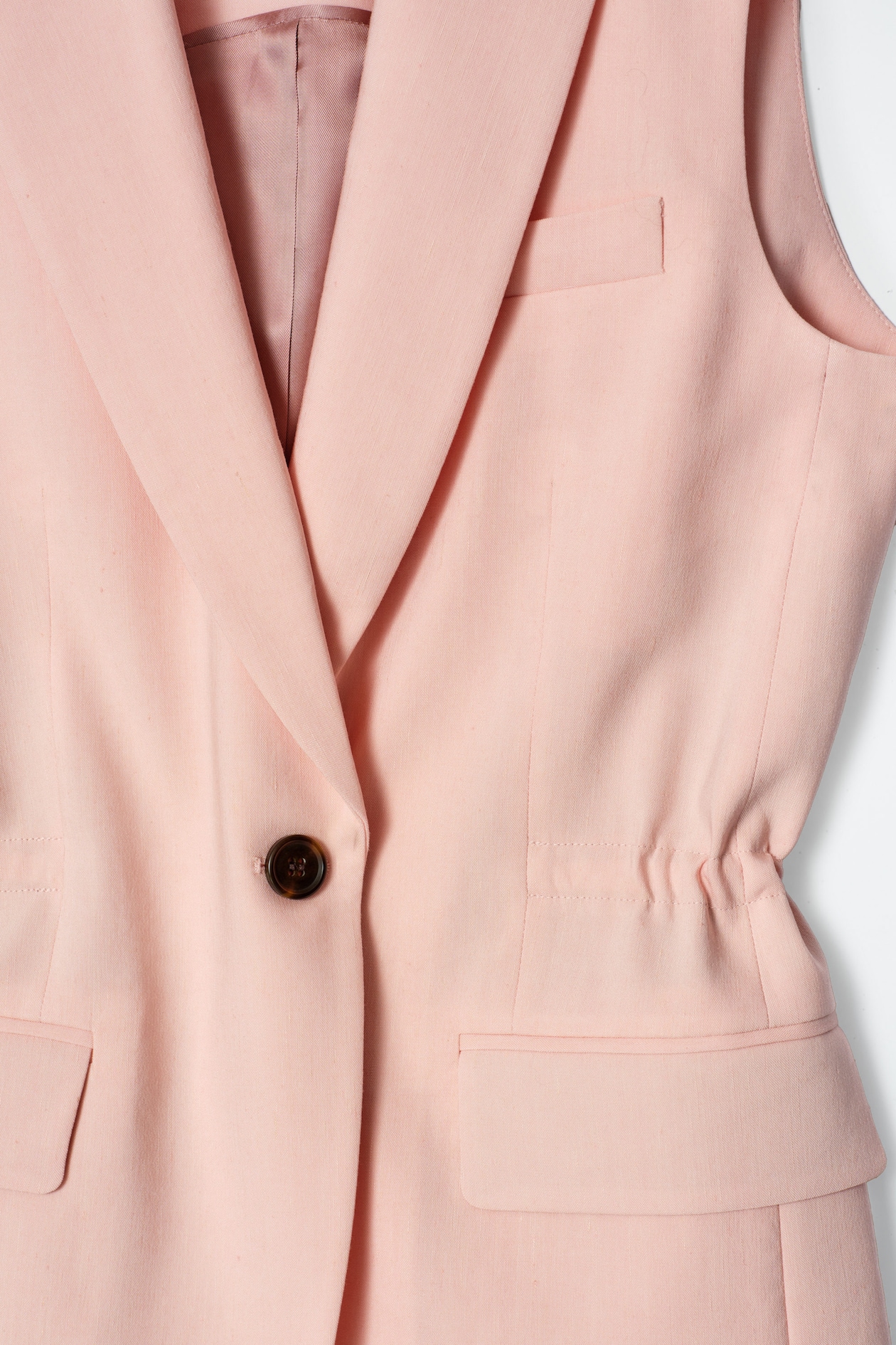 Представляем жилет, вдохновленный классическим искусством шитья. Приталенная модель дополнена вшитым изнутри шнурком для обеспечения плотной посадки по талии. Мы рекомендуем создать монохромный комплект с подходящими шортами.