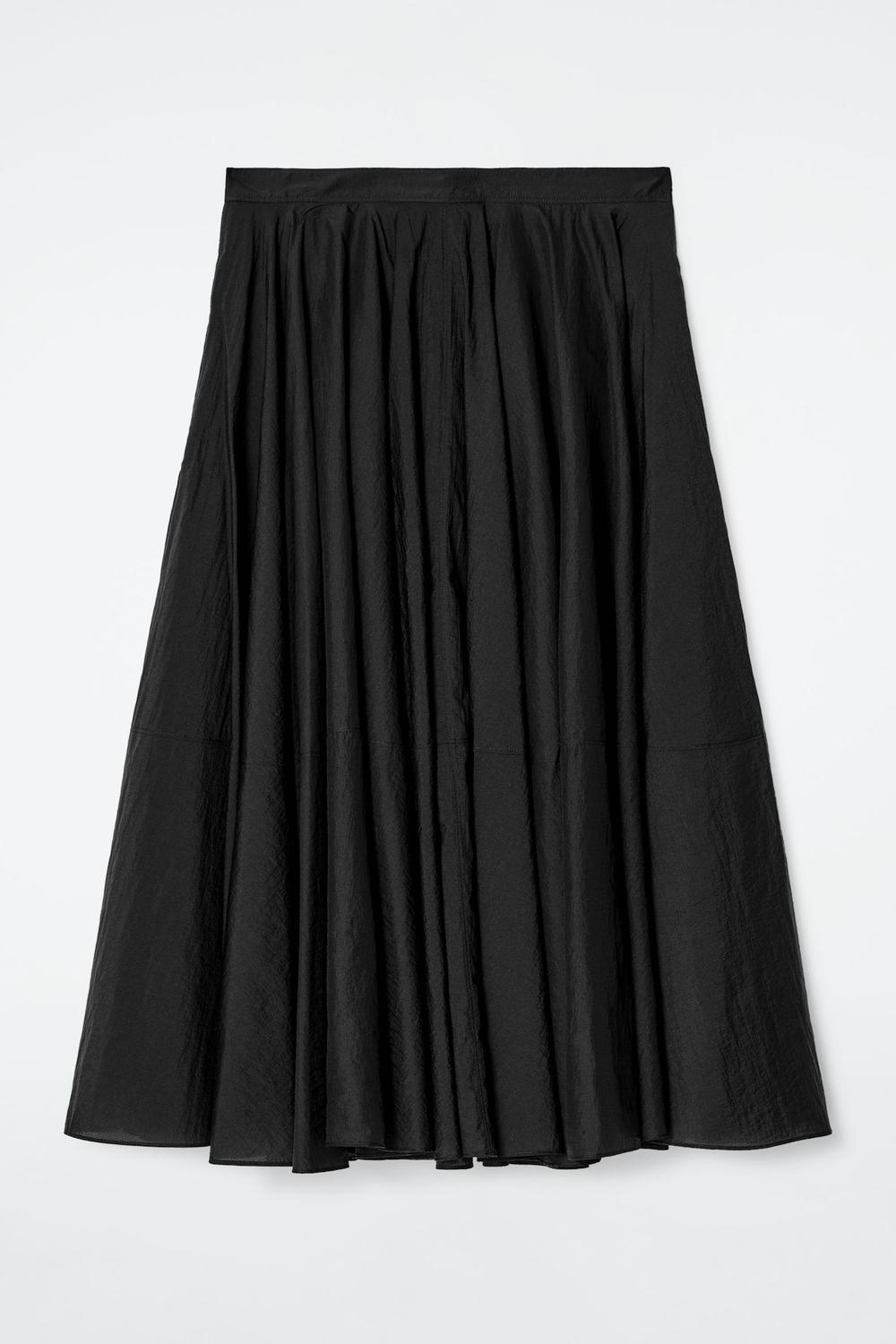 Представляем юбку-миди, женственный крой которой привнесет в гардероб нотку свежести. Модель в классическом черном оттенке дополнена воздушными складками, придающими ей легкость. Завершают образ карманы, аккуратно расположенные по бокам. Дополнить образ рекомендуем футболкой без рукавов и мюлями.