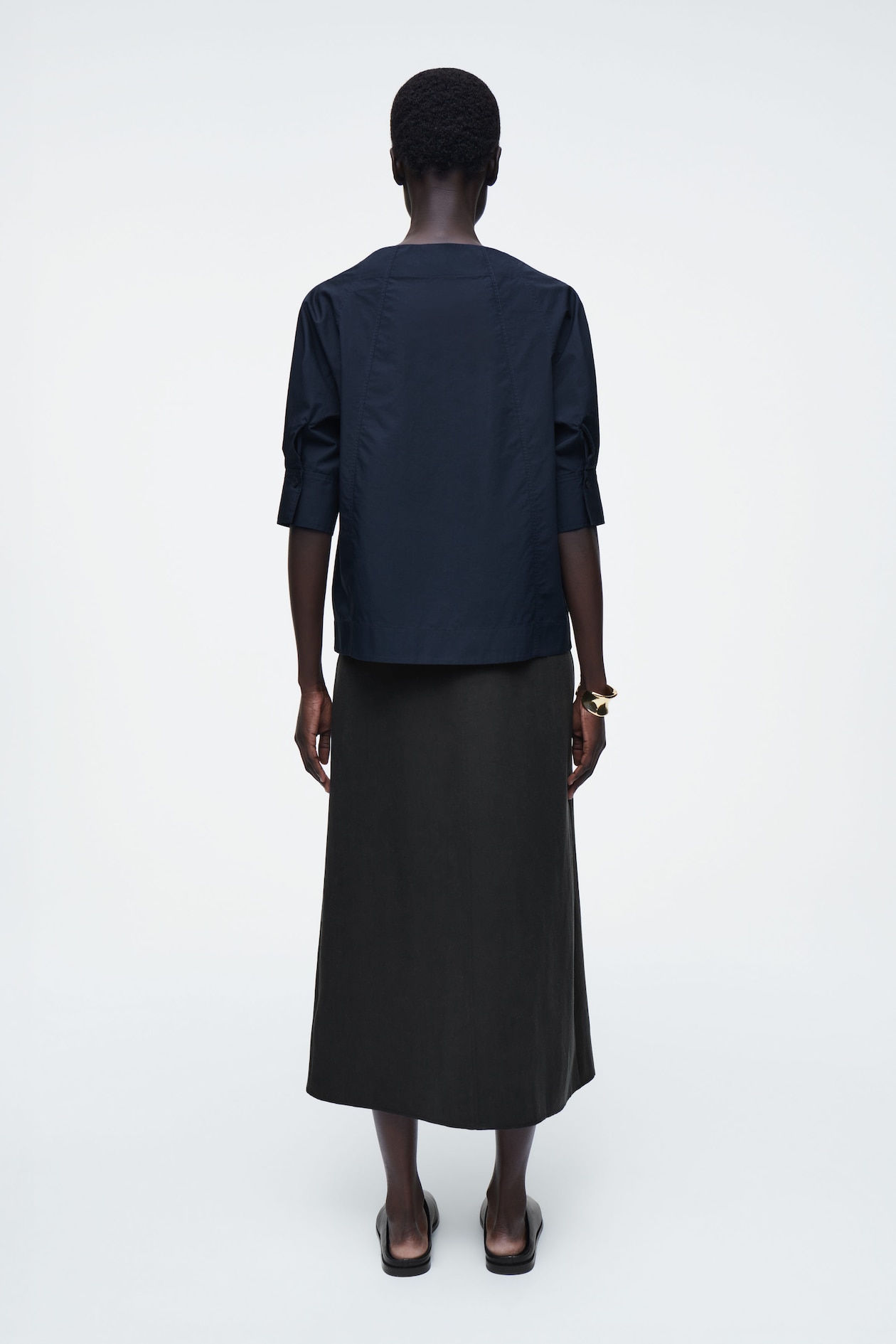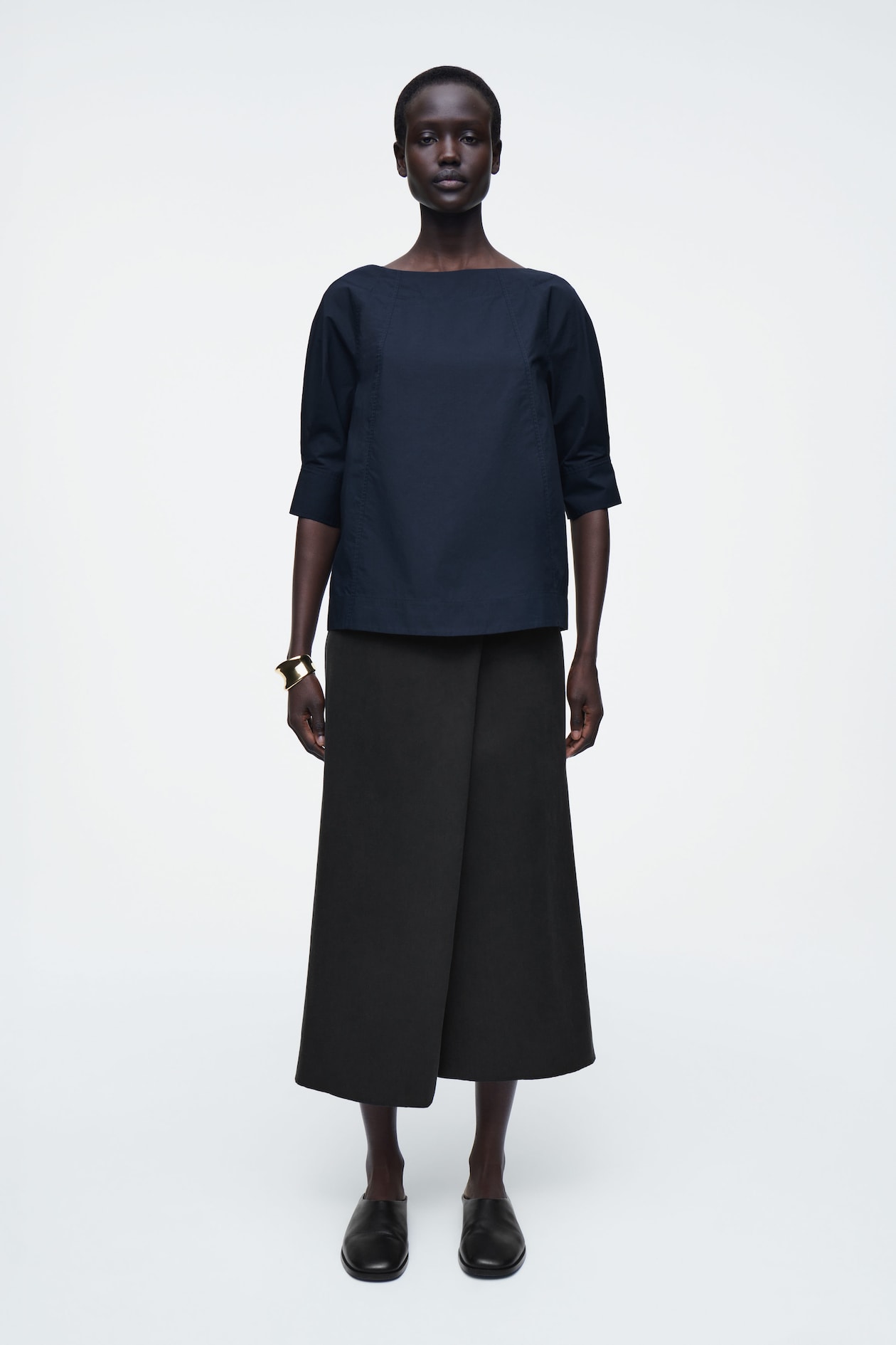 Хлопковая блузка с вырезом лодочкой COS, темно-синий 6 044₽