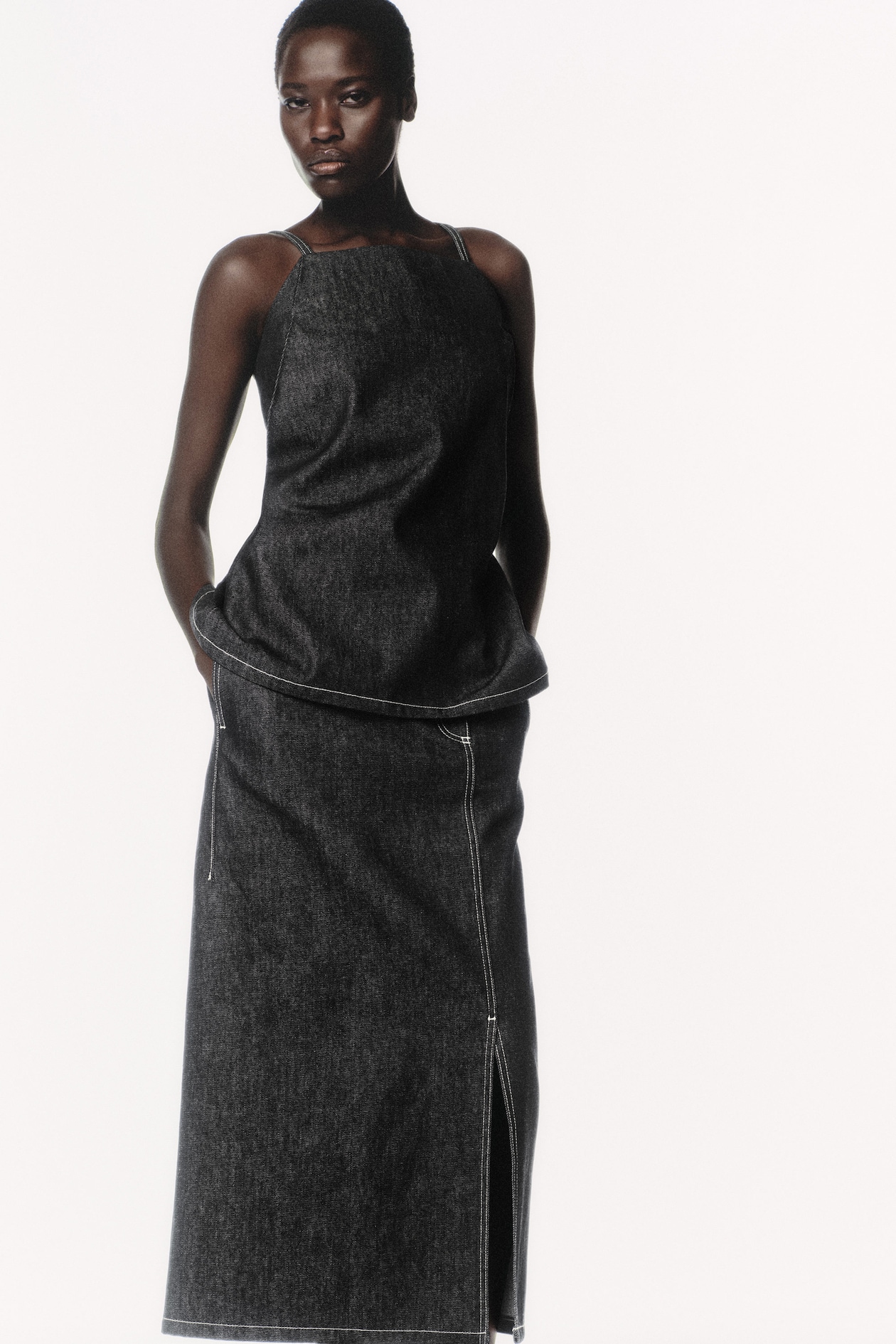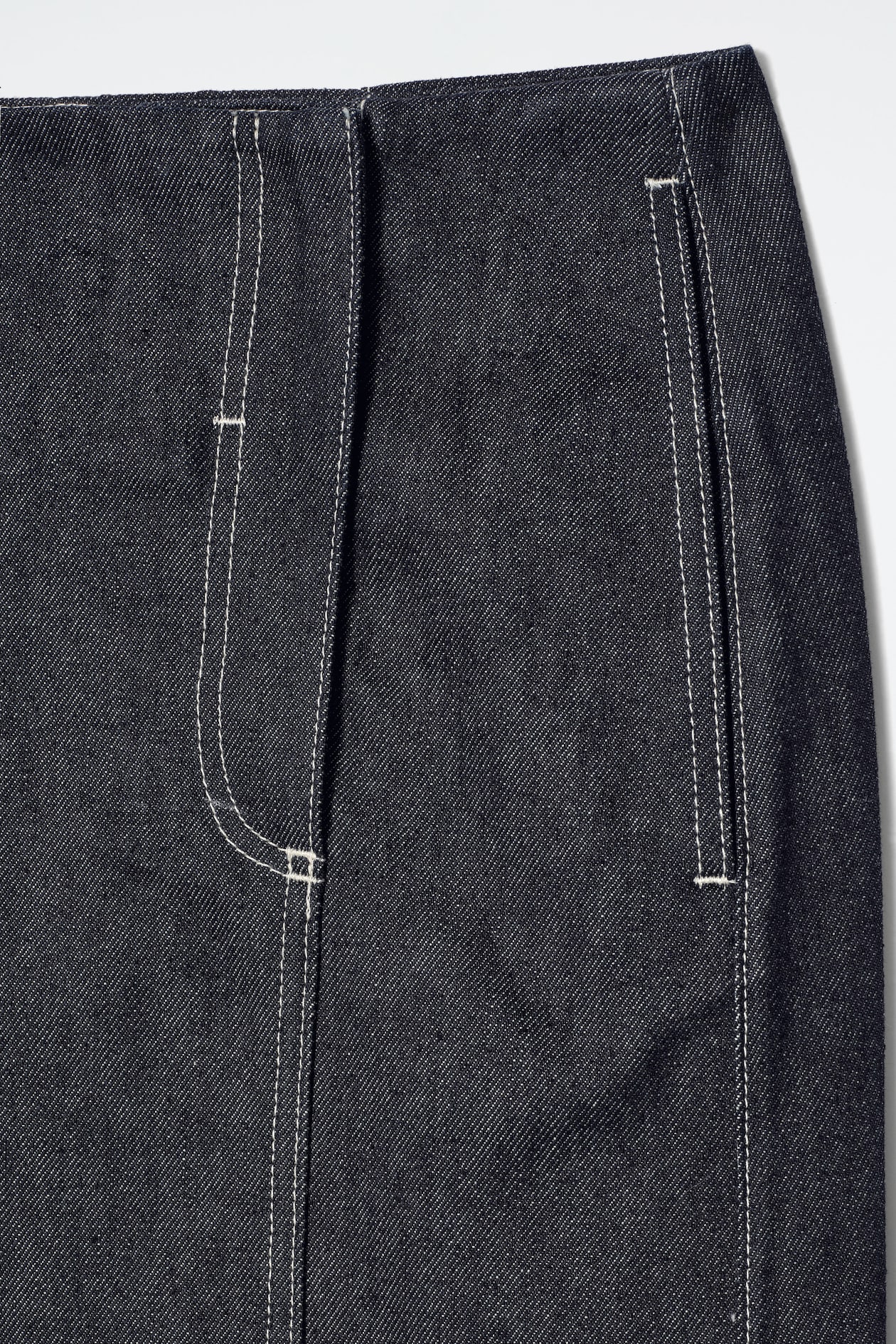 Представляем капсульную коллекцию COS REMADE, состоящую из пяти предметов женского гардероба, изготовленных на 20% из переработанного хлопка COS, что дает им вторую жизнь. Юбка из денима цвета индиго с видимыми краями представляет собой нетрадиционную интерпретацию классики – застежка слегка смещена в сторону, а вся вещь отличается деталью в виде разреза; Кроме того, характерным элементом коллекции является декоративная белая строчка. Мы рекомендуем создать единый стиль с помощью подходящей блузки или жакета.